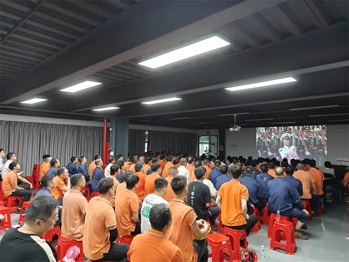 كان الثالث من سبتمبر يومًا ذا أهمية كبيرة للشعب الصيني بأكمله. في هذا اليوم الخاص، قاد رئيس شركة Fujian Quangong Machinery Co.,Ltd فو بينهوانغ والمدير العام فو شينيوان جميع الموظفين في قاعة اجتماعات الشركة لمشاهدة العرض العسكري الكبير ومشاهدة هذه اللحظة التاريخية المثيرة.